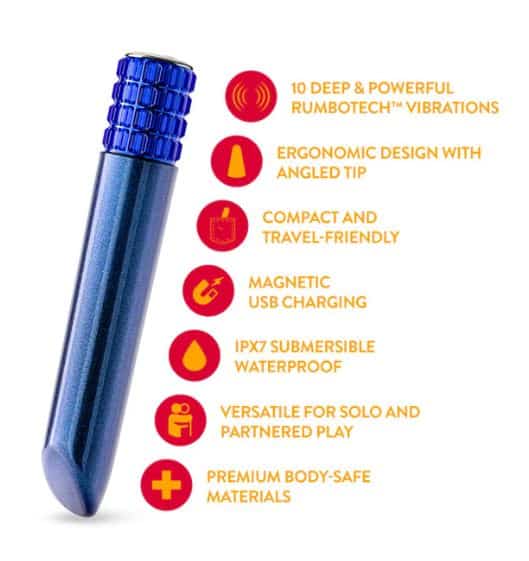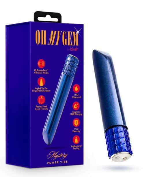 Awaken your passion with Oh My Gem Mystery. Adorned with radiant Sapphire gems, this elegant vibe captures the allure of the heirloom precious Sapphire stone, bringing a touch of sophistication to every intimate moment. Experience 10 deep, rumbly vibration modes—5 speeds and 5 patterns—powered by Blush’s RumboTech™ for deep, resonant sensations. Designed with beauty and ease, Mystery’s sleek, petite form is perfect for travel, featuring an angled precision tip that delivers pinpoint pleasure and stimulation. Crafted from body-safe materials, it’s IPX7 waterproof and recharges effortlessly with a magnetic USB, inviting you to explore wherever your desires take you. Make Oh My Gem Mystery the crown jewel of your collection—a celebration of sensuality and self-love. Savor its powerful vibrations and luxurious allure, time after time.